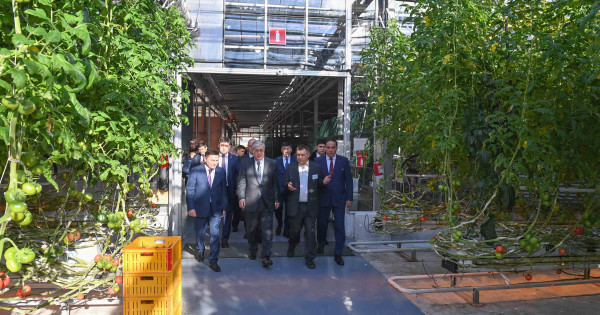 Prezıdentke jylyjaı ónimderi – qııar, qyzanaq, burysh jáne basqa da kókónister men gúl ósirýdiń zamanaýı tehnologııalary tanystyryldy.