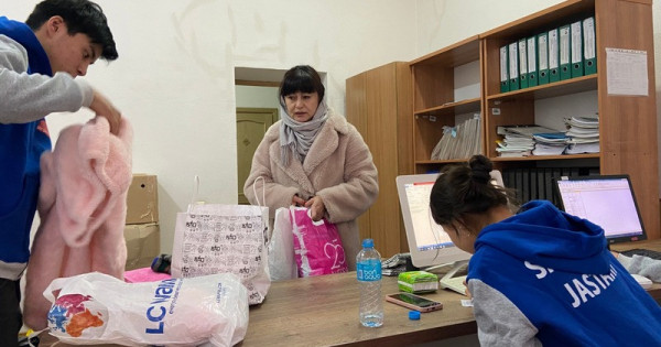 Al oblystyń Jastar resýrstyq ortalyǵynyń janynan ashylǵan gýmanıtarlyq kómek jınaý pýnktinde eriktiler kúnde kezekshilik atqarady. Eriktiler qarasha halyq ákelgen zattardy qabyldap, ony suryptap, býyp-túıedi. Halyq kóbine kıim-keshek, tósek-oryn jabdyqtaryn ákep beripti.