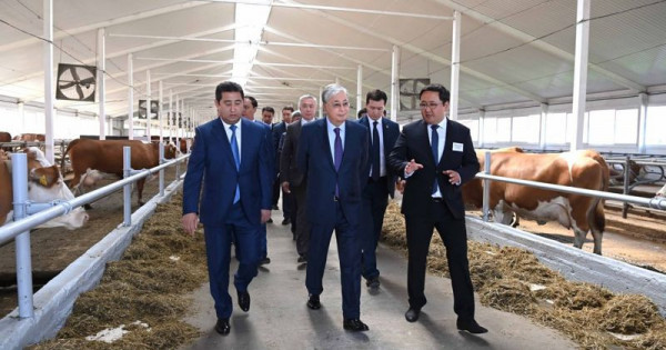 Prezıdentke sút fermasyndaǵy saýyn sehy jáne mal bordaqylaý alańy kórsetilip, osy keshende qoldanylatyn sút óndirý tehnologııasy tanystyryldy.