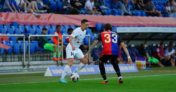 Qos qarsylas alǵashqy taımnyń ortasyna deıin teketires oıyn kórsetti. Jıyrma altynshy mınýtta qonaqtardyń ortadan uıymdastyrǵan ótkir shabýylynyń nátıjesinde jartylaı qorǵaýshy Anton Kade esep ashty. Esep – 0:1.