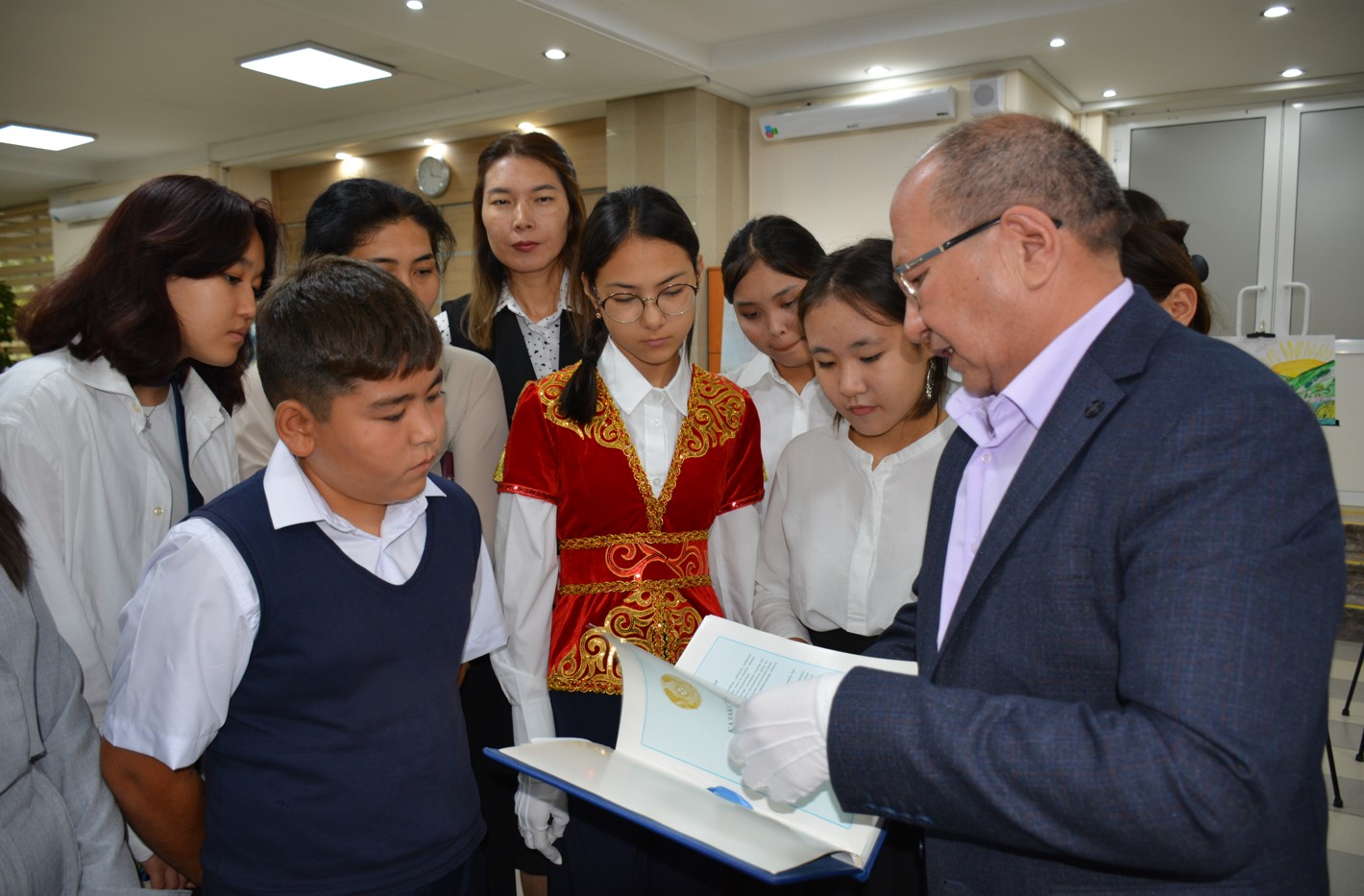 Oqýshylardyń bul kórmege úlken jaýapkershilikpen, izdenispen kelgeni baıqalady. Buǵan deıin olar arnaıy sheberlik sabaǵy kezinde Konstıtýsııa kúnine oraı qujattyq kórmege qandaı isterdi usynatynyn, kitap kórmesine qandaı basylymdardy qoıatynyn jáne sýret kórmesine ilinetin shyǵarmalardy Arhıv qyzmetkerlerimen birge tańdasyp, úlken qyzyǵýshylyqpen jumys istedi. Nátıjesinde, qujattyq kórmeni №195 jalpy bilim beretin mekteptiń oqýshysy Ámına Tursynjan, №35 mektep-gımnazııanyń 9-synyp oqýshysy Adııa Serjan, 125 High School mektebiniń 11-synyp oqýshysy Amıra Ilıas tanystyrdy, al kitap kórmesi týraly №195 jalpy bilim beretin mekteptiń oqýshysy Mahabbat Muqan baıandady.