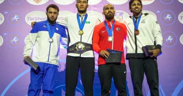 – Qanat aǵa, jeńis qutty bolsyn. Rızabek tarıhtyń jylnamasyna esimin altyn árippen qashap jazdy desek te bolady. Bul jeńisti keshegi atalary Ábilseıit Aıhanov, Amangeldi Ǵabsattarov, Amanjol Buǵybaev, búgingi kúnde orta býyn ókili sanalatyn Máýlen Mamyrov, Islam Baıramýkov, keıingi tolqyn ókilderinen Dáýren Jumaǵazıev, Dáýlet Nııazbekov, Nurqoja Qaıpanov syndy balýandar da armandady, soǵan jetýge umtyldy. Biraq qazaq eliniń ýysyna ilikpeı, qanjyǵasyna bókterý buıyrmaı kelgen erkin kúresten álem chempıony ataǵy Aıtmuhan aqsaqaldyń nemeresine buıyrǵanyn tarıhı sát desek qata aıtpaǵan bolar edik.