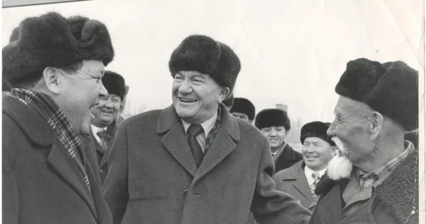 Sol jaqtan bastasaq, sýrette Jambyl oblystyq partııa komıtetiniń birinshi hatshysy Hasen Bekturǵanov, aýdandyq aýyl sharýashylyǵy basqarmasynyń bastyǵy Qarataı Adambaev jáne soǵys ardageri, sol tustaǵy Fýrmanov atyndaǵy keńshardyń kásipodaq komıtetiniń tóraǵasy Álıhan Esjanov (aq jeıdeli) tur. Al respýblıkadaǵy eń joǵarǵy laýazymdyq qyzmetine qaramastan qarapaıymdylyq pen kishipeıildiliktiń úlgili úrdisimen Dımekeńniń ózi qoltyǵynan ustaǵan aq saqaldy qarııa – Fýrmanov atyndaǵy keńshardyń ozat malshysy Qońqa Ormanbekov.