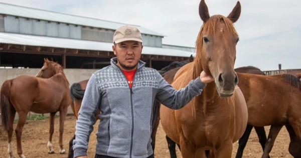 «Jylqylarymyzdy biraz jyldan beri at jarystaryna qosyp júrmiz. Bul – taza tuqymdy aǵylshyn jylqylary. Bir júırigimiz Qyrǵyzstanda ótken kóshpelilerdiń dúnıejúzilik oıyndarynyń báıgesinde aldyna qara salmady», deıdi fermer.
