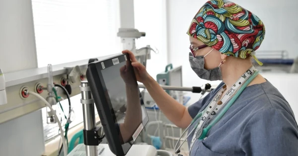 Balalar aýrýhanasynda biz aldymen vırýs ınfeksııasynyń blogine ótip, odan ári dárigerlermen birge anestezıologııa, reanımasııa jáne qarqyndy terapııa bólimshesine bettedik. Qyzylshamen aýyrǵan balalardyń jansaqtaý bólimi bólek ornalasqan eken. Munda qazan aıynda epıdahýal kúrdelenip, naýqastar kóbeıgen tusta qyzylshamen aýyrǵan balalardy qabyldaıtyn bólek bólim ashylypty. Qysqasy, ǵımarattyń osy bóliginde tek qyzylshamen aýyrǵandar jatady. Olardyń basym kópshiligi – 7 jasqa tolmaǵan balalar. 7 jastan asqan balalar shamamen qyzylshamen aýyrǵandardyń 10 paıyzyn ǵana quraıdy. Jansaqtaý bólimine barǵanda mamandar jaǵdaıy aýyr 4 balaǵa qaraılasyp jatqanyn ańǵardyq. Balalardyń palatasy – tolǵan monıtor. Bul apparattar ár mınýt saıyn qandy, balanyń júrek soǵysyn, tynys alýyn, qyzýyn qadaǵalaıdy. Palatada qyzylsha aýrýy asqynǵan eki jasar bala bar. Oǵan qyzylshanyń saldary ókpege, nerv júıesine ǵana emes, búırekke de áser etken. Jaǵdaıy óte aýyr. О́kpesi qatty qabynǵan soń ázirge ózdiginen tynys alýǵa áli kelmeıdi. Balalardyń hal-ahýalyn surastyryp júrgenimizde reanımasııa bólimine dárigerler besinshi balany ákelip jatty. Jumys qaýyrt. Dárigerler balalardy aman alyp qalýdyń barlyq qam-qareketin jasap baǵyp otyr. Biz de balalardyń kóp uzamaı saýyǵyp ketýin tilep, jansaqtaý bóliminen shyqtyq.