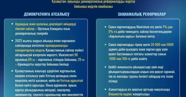 Ulttyq zańnamany lıberalızasııalaý nátıjesinde «Respublica» jáne «Baıtaq» sııaqty jańa saıası partııalar tirkeldi. «Respublica» partııasy 2023 jylǵy naýryzda ótken Parlament saılaýynda «Amanat», «Aq jol», «Aýyl», «Jalpyulttyq sosıal-demokratııalyq partııa» jáne «Qazaqstannyń Halyq partııasy» sekildi tanymal partııalarmen qatar jeńiske jetti.