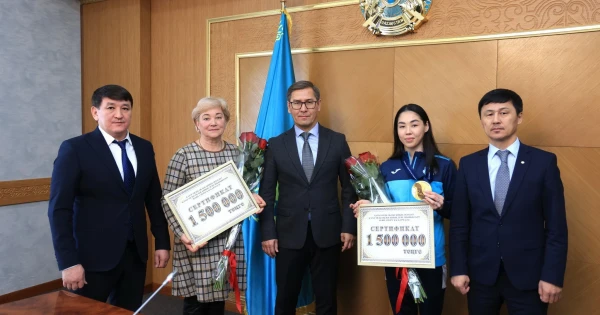 Oblys ákiminiń orynbasary sportshy men onyń jattyqtyrýshysyna yqylas gúli men 1,5 mln teńgelik sertıfıkat tabys etti.
