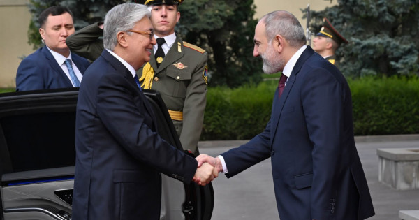 Qurmet qaraýylynyń bastyǵy eki el basshylaryna raport berdi. Qazaqstan men Armenııanyń ánurandary shyrqalǵannan keıin Qasym-Jomart Toqaev pen Nıkol Pashınıan bir-birine resmı delegasııa múshelerin tanystyrdy.