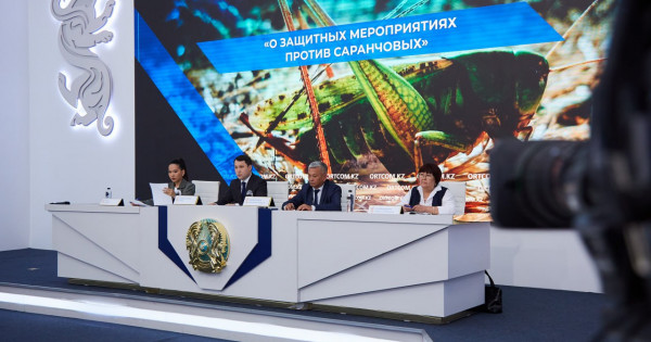 «Qazirgi ýaqytta Aqmola, Aqtóbe, Almaty, Qaraǵandy, Qostanaı oblystarynda ıtalııandyq prýsqa qarsy, Abaı, Jambyl oblystarynda azııalyq shegirtkege qarsy hımııalyq óńdeýler jalǵasyp jatyr», dedi spıker.