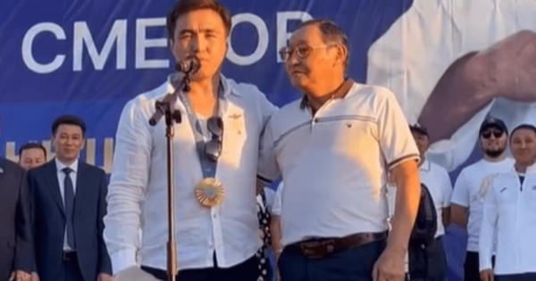 Aýdan ákimi Ernar Esirkepov chempıonǵa sý jańa kóliktiń kiltin tabystady. Al Eldos Smetov sporttaǵy alǵashqy bapkeri Ahmet Jumaǵulǵa alǵysyn bildirip, T.Rysqulov aýdany ákimi syıǵa tartqan sý jańa kóligin mingizdi.