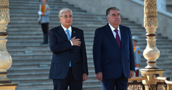 Resmı shara kezinde Memleket basshysynyń qurmetine zeńbirekten 21 ret oq atyldy. Munan soń Qurmet qaraýylynyń bastyǵy eki el basshylaryna raport berdi. Qazaqstan men Tájikstannyń memlekettik ánurandary shyrqalyp, Qasym-Jomart Toqaev pen Emomalı Rahmon bir-birine delegasııa múshelerin tanystyrdy.