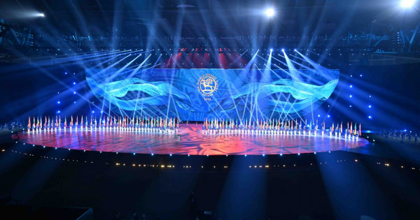 Dúbirli dodanyń ashylý saltanatynda qazaq jerin meken etetin túrli etnos ókilderiniń balalary Qazaqstan Týyn alyp shyqty. Budan keıin elimizdiń Ánurany shyrqalyp, qalyptasqan dástúr boıynsha kóshpeliler oıyndaryna qatysýshy sportshylardyń sherýi ótti.