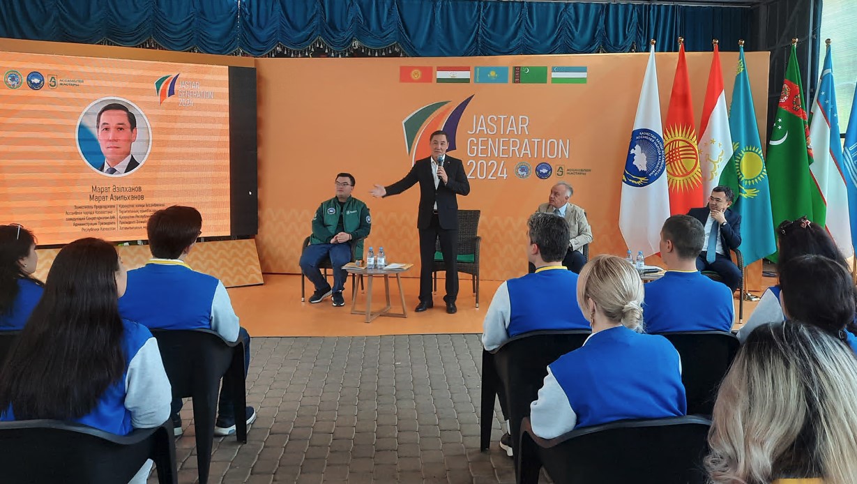 «Búgingi is-sharaǵa kelgen jastardyń deni – el aımaqtaryndaǵy jastar birlestikteriniń jetekshileri men belsendi azamattar. Sondaı-aq qatarymyzǵa bıyl kórshi elderden delegat jastar kelip otyr. Biz olarǵa elimizdiń tarıhyn, baı mádenıetin, jastarymyzdyń yntymaq-birligin pash etemiz. Búginde «Assambleıa jastary» qanatynda 9 myńnan asa jas kóshbasshy bar. Olar – kúndelikti qoǵamdyq jumystarǵa atsalysyp, el birligin nyǵaıtýǵa úles qosyp júrgen memleketshil jandar. Belsendilerimiz memlekettik qyzmet qurylymdarynda, memlekettik ınstıtýttarda, ǵylym, mádenıet, ekonomıka, bıznes, sport sekildi barlyq jetekshi salada boı kórsetip júr. Dástúrli lagerdiń maqsaty – óńirdegi jastar problemasyna, olardyń talap-tilekterine qulaq asý ári bir maqsatqa jumyldyrý. Bizge ortaq alań usynyp, is-sharanyń ásem Almatyda ótýine muryndyq bolǵan Almaty qalasynyń ákimdigine alǵys bildiremiz», deıdi T.Djýmýrbaev.