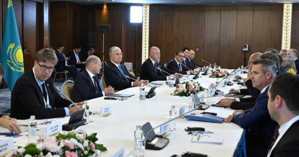 «Qazaqstan-Germanııa» bıznes forýmyna deıin Qasym-Jomart Toqaev nemistiń iskerlik orta ókilderimen kezdesti. Memleket basshysynyń pikirinshe, Germanııanyń jetekshi kompanııalarynyń Qazaqstanǵa kelýi eki eldiń de ekonomıkalyq yntymaqtastyqty damytýǵa nıetti ekenin kórsetedi.