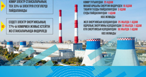 «Qazba otyn eń las, eń qaýipti sanalady jáne aýaǵa zııandy zattardy tym kóp bóledi. Otynnyń bul túrine kómir, qońyr kómir jáne munaı jatady. Qazaqstanda elektr energııasynyń 77 paıyzy kómirmen jumys isteıtin jylý elektr stansalarynda óndiriledi. Al atom energetıkasy men jańǵyrmaly energııa kózderi áldeqaıda qaýipsiz bolyp esepteledi», dep málimdeıdi «Our World In Data».