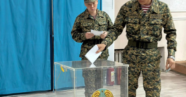 Otan aldyndaǵy boryshtaryn ótep júrgen barlyq qatardaǵy jaýyngerler arnaıy sappen kelip, № 6656 áskerı bóliminde ornalasqan № 38 saılaý ýchaskesinde daýys berdi.