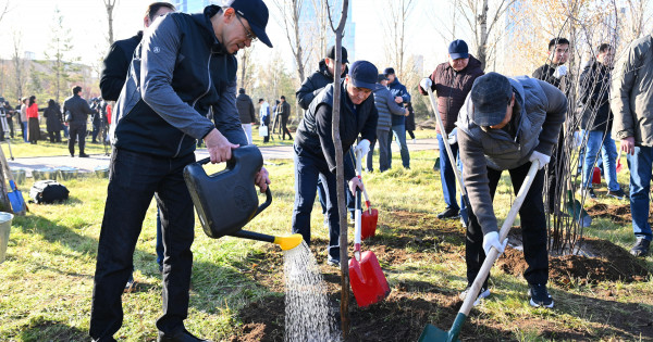 Respýblıka kúni qarsańynda uıymdastyrylǵan aksııa aıasynda senatorlar Turan dańǵyly, Dinmuhamed Qonaev, Qabanbaı batyr jáne Dostyq kósheleriniń arasynda ornalasqan saıabaqta kógaldandyrý jumystaryn júrgizdi. Igilikti iske depýtattar men Palata Apparatynyń qyzmetkerlerinen bólek, Senat janyndaǵy sarapshylar klýbynyń músheleri jáne elordanyń tazalyǵyn kózdeıtin bastamalarǵa únemi óz úlesterin qosyp júrgen Taldaý mektebiniń túlekteri de atsalysty. Is-sharaǵa barlyǵy 100-ge jýyq adam qatysyp, olar alma aǵashynyń jáne moıyl, yrǵaı sııaqty buta jemisteriniń 200 kóshetin otyrǵyzdy.