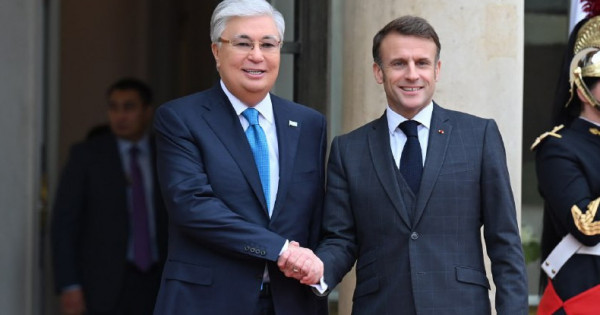 Qasym-Jomart Toqaevty Elıseı saraıynyń ortalyq kireberisinen Prezıdent Emmanıýel Makron kútip aldy.