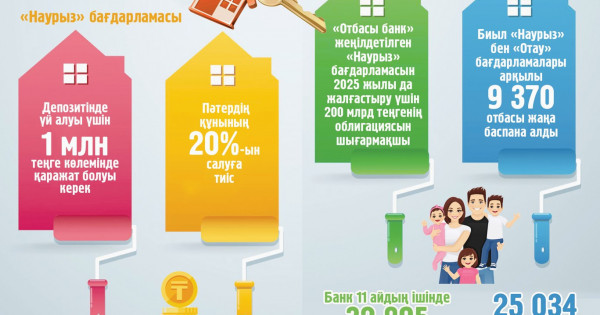 – Baǵdarlamalardy jalǵastyrý úshin 2025 jyly qosymsha 200 mlrd teńgeniń oblıgasııasyn shyǵaramyz. Bank oblıgasııalardy 14-15%-dan naryqtyń baǵamymen shyǵarady. 7%-ǵa deıin memleketten sýbsıdııalanady. Birinshi ret 24 qańtarda bıýdjetten 8 mlrd 180 mln teńge bólýdi suraımyz. 2025 jyly «Naýryz» baǵdarlamasynyń tabysty júzege asýyna bıýdjet qarajatyn bólý úderisin tezdetýdi usynamyz. Atalǵan baǵdarlama jas otbasylar arasynda suranysqa ıe. Sondyqtan bank osy jumystardy ári qaraı jalǵastyrýdy josparlaıdy, – dedi.