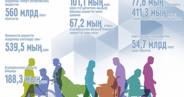 Желтоқсанға дейін елде мүгедектігі бойынша мемлекеттік әлеуметтік жәрдемақы алатындар саны – 539,5 мың адам, асыраушысынан айырылу бойынша – 188,3 мың адам. Мүгедектігі жөнінен мемлекеттік әлеуметтік жәрдемақылардың мөлшері мүгедектіктің тобына, себебіне, сондай-ақ тиісті қаржы жылына арналған «Республикалық бюджет туралы» заңда белгіленген ең төмен күнкөріс деңгейінің шамасына байланысты болады. Асыраушысынан айырылу жағдайы бойынша мемлекеттік әлеуметтік жәрдемақылардың мөлшері қайтыс болған асыраушының асырауындағы адамдардың санына, қайтыс болу себептеріне, ең төменгі күнкөріс деңгейіне қарай белгіленген.