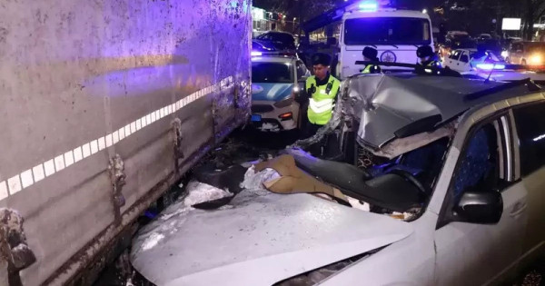 Jeńil kólik jol jıeginde turǵan Renault júk kóligine soǵylǵan. Soqqynyń kúshti bolǵany sonshalyq, aýyr júk kóligi alǵa jyljyp, aldynda turǵan basqa júk kóligimen soqtyǵysqan.
