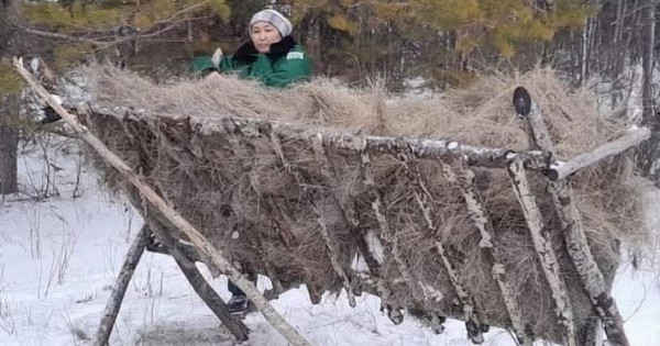 Qarqaraly MUTP Taý ormanshylyǵynyń memlekettik ınspektorlary «Shoqpartas» kardonynyń aınalymynda ańdarǵa qosymsha azyqtandyrý jumystaryn júrgizedi.