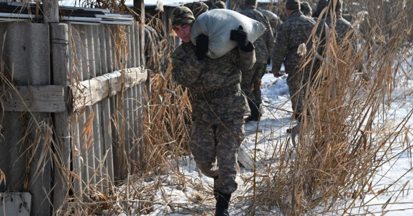 Sý tasqynyna qarsy is-sharalarda tájirıbesi bar Qarýly kúshterdiń Desanttyq-shabýyldaý áskerleriniń áskerı qyzmetshileri aýyl turǵyndaryna kómekke keldi.