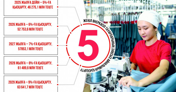 - 2025 jylǵa deıin – jeńil ónerkásip taýarlarynyń zańsyz aınalymyn 5%-ǵa qysqartý, 46 275,1 mln teńge;