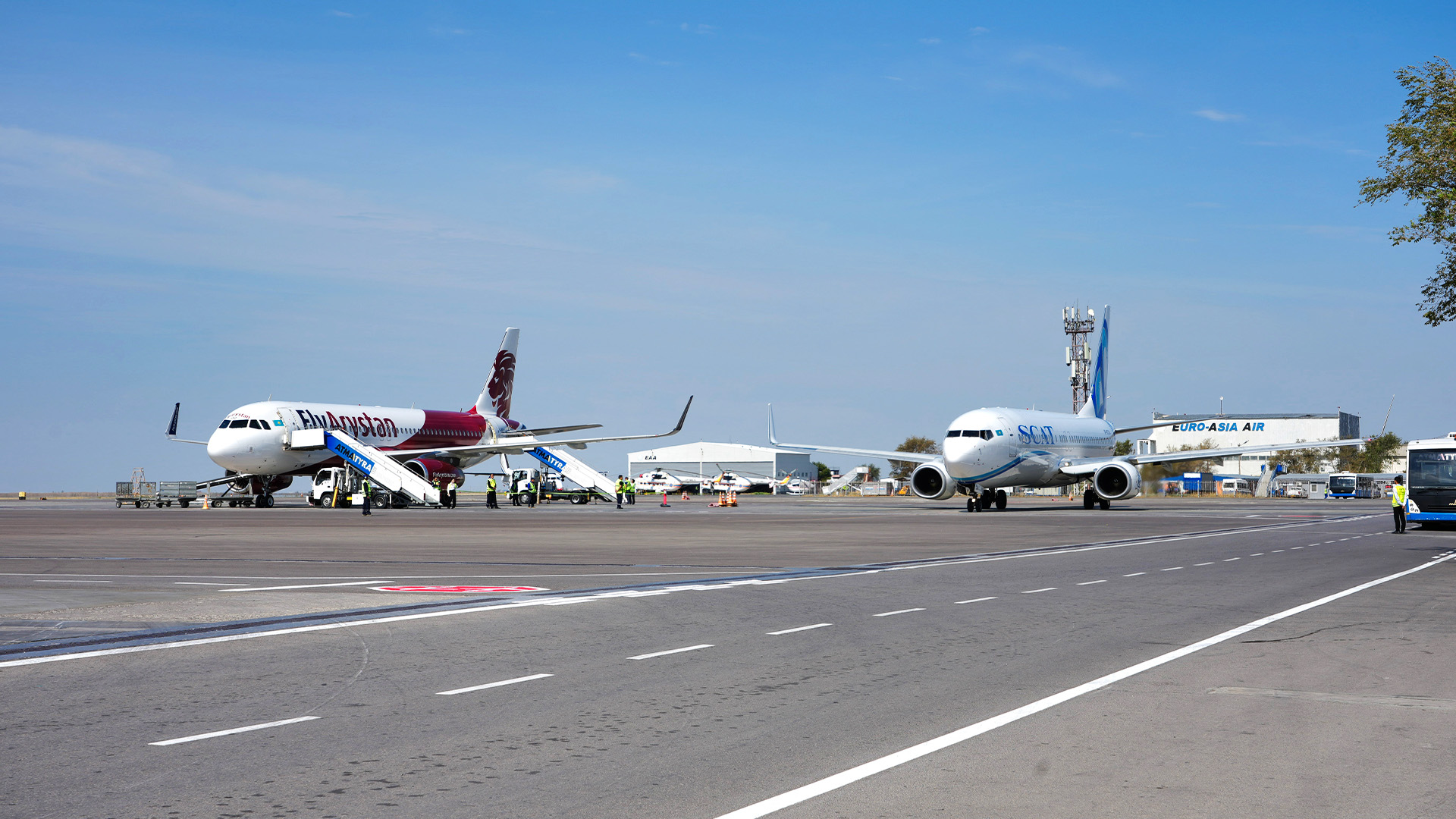 Otandyq avıakompanııalar «Air Astana», «SCAT», «Qazaq Air», «FlyArystan» Qazaqstannyń 19 qalasyna turaqty ushyp turady. Halyqaralyq áýe qatynasyn álemniń 26 elinde 50 baǵytta 30 sheteldik avıakompanııa oryndaıdy.