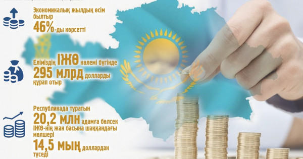 Belgili ekonomıst Saparbek Jobaevtyń aıtýynsha, elimizdiń IJО́ kólemi búginde 295 mlrd dollardy qurap otyr. Respýblıkada turatyn 20,2 mln adamǵa bólsek, IJО́-niń jan basyna shaqqandaǵy mólsheri 14,5 myń dollardan túsedi.