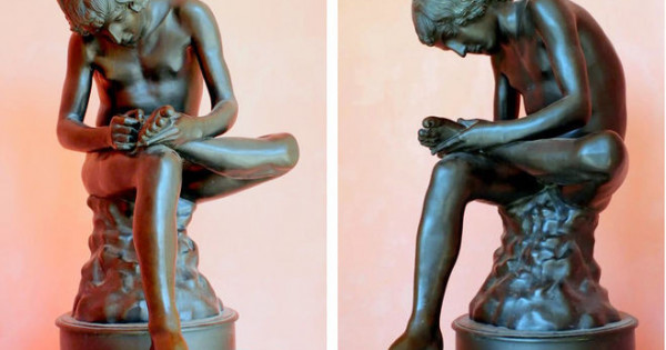 Ańyzdyń aıtýynsha, bul músin jolyndaǵy tikenekterge qaramastan jarystan birinshi bolyp kelgen áıgili spartalyqqa arnalǵan. Kishkentaı júırik tabanyndaǵy qan qaqsatqan jaraqatqa qyńq etpeı, márege jetip tynǵansha jarys jolynan shyqqan joq. Onyń erik-jigerine tánti bolǵan zamandastary qaısarlyq pen tózimdilikti ulyqtaý úshin osyndaı eskertkish ornatqan.