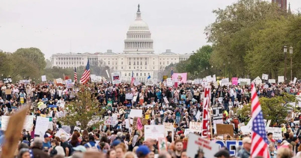 Tramp ımportqa joǵary kedendik tarıf engizgen soń, basqa elderde de – atap aıtqanda, London, Parıj jáne Berlınde – oǵan qarsy yntymaqtastyq mıtıngileri ótti. Vashıngtonda ótken mıtıngte Demokratııalyq partııanyń zań shyǵarýshylary sóz sóıledi. Olar ásirese Trampqa demeýshilik jasaıtyn baı adamdardyń, sonyń ishinde Ilon Masktiń yqpalyn kóp atap ótti. Florıdadan saılanǵan kongressmen Maksvell Frost bul jaǵdaıdy «úkimetimizdiń mıllıarderlerge jutylýy» dep atady.