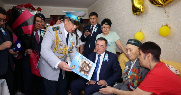 Marat Sultanǵazıev soǵys jyldaryndaǵy erlikteri úshin shyn júrekten alǵysyn aıtyp, ardagerlerge qamqorlyq kórsetý – memlekettik saıasattyń basty baǵyttarynyń biri ekenin atap ótti.