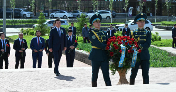 Is-sharaǵa Parlament fraksııalary men ardagerler uıymdarynyń ókilderi jáne Baýyrjan Momyshuly monýmenti mańyna jınalǵan jurtshylyq qatysty. Olar erlikpen qaza tapqan qaharmandardyń rýhyna taǵzym etip, bir mınýt únsizdikpen eske aldy.