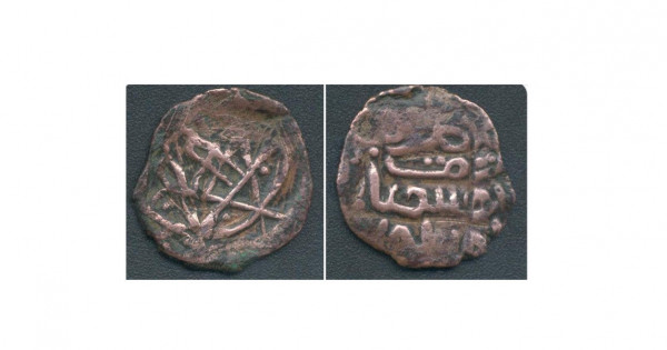 Mýzeılik anyqtamalyqta tıynnyń qaıdan tabylǵany jáne qaıda saqtalǵany týraly málimet joq. Mekemeniń kishi ǵylymı qyzmetkeri Tolqyn Joldasovtyń aıtýyna qaraǵanda, moneta mystan jasalǵan. Saqtalý jaǵdaıy – nashar. Pishini – sheńber poshymdy dóńgelek. Tıynnyń aınala jıegi mújilý sebebinen keıbir tańbalary tozǵan. Tipti keıbir beder izderi joıylyp ketýge jaqyn. Eń ókinishtisi, tıyn soǵylǵan ýaqyt (jyly) shekitilgen tus synyp