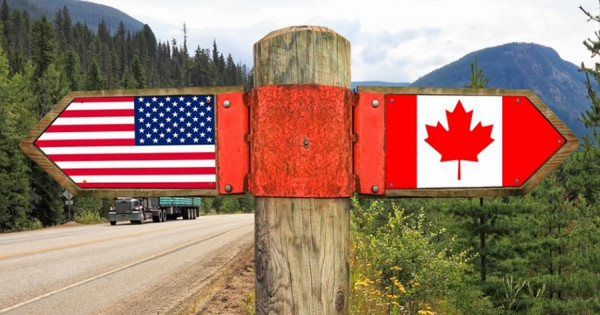 Eki eldiń shekarasy Tynyq muhıty jaǵalaýynan Atlant muhıtyna deıingi aýmaqty qamtıdy. Eń qyzyǵy – shekaranyń bir bóligi Alıaska arqyly ótedi. Iаǵnı bul shekara eki eldiń negizgi materıgin ǵana emes, AQSh-tyń Alıaska shtatymen Kanadanyń soltústigin de baılanystyrady. Keı tusynda bul shekara tyǵyz orman, ózen-kól, tipti adam aıaq baspaǵan jabaıy tabıǵat arqyly ótedi. Eki el arasynda qorshaý da, bekinis te joq. Kóp jaǵdaıda belgi retinde shekara syzyǵynyń boıyna ornatylǵan taqtaıshalar men tirekter ǵana bar.