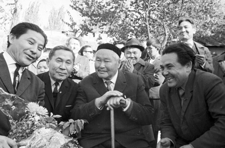 Jazýshyny qyzyqtaı baqylap qarap turmyn. Mine, taǵy eki-úsh bozbalaǵa qoltańba syılady. Sóıtti de, «Bar mázir, joq jaı. Osyǵan rıza bolyńdar, qaraqtarym. Oqýshy balalarsyńdar (stýdent degeni bolar – Q.E.) ǵoı. Jaqsy oqyńdar. Oqymysh bolyńdar. Zamandaryń keledi, urpaqtarym, baqytty bolyńdar!» dedi. Dedi de aýyr denesin aqyryn tiktep, taıaǵyna súıenip baıaý basyp shyǵyp bara jatty.