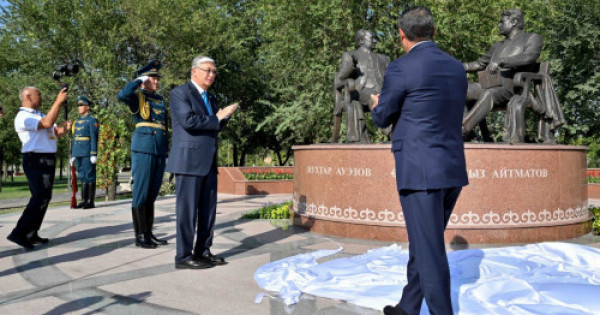 «Áýezovtiń «Qarash-qarash oqıǵasy», «Kókserek» týyndylaryn qyrǵyz rejısserleri Bolotbek Shamshıev pen Tolomýsh О́keev kıno tilinde sóıletti. Al qazaq rejısseri Ardaq Ámirqulov «Qosh bol, Gúlsarynyń» jelisimen kórkem fılm túsirgen. Elderimizdiń arasyndaǵy tyǵyz rýhanı baılanysty máńgi dostyq pen tatý kórshiliktiń arqaýy deýge bolady. Ony baǵalaı bilý jáne nyǵaıta túsý – barshamyzǵa ortaq paryz. Bul – uly jazýshylarǵa, sondaı-aq naǵyz eldikke arnalǵan biregeı eskertkish, qazaq-qyrǵyz baýyrlastyǵynyń aıqyn belgisi. Búkil Qazaq eliniń aıyr qalpaqty aǵaıynǵa yqylasy erekshe. Biz qyrǵyz aǵaıynnyń da dál sondaı rııasyz peıilin únemi sezinip júremiz», dedi Prezıdent.