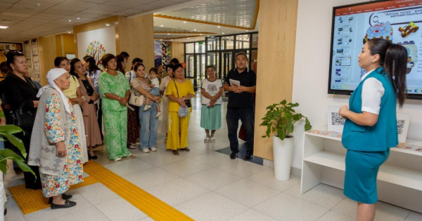 Jumys barysymen mekteptiń pedagog - uıymdastyrýshysy Arýjan Kárimqyzy tanystyrdy. Ata-analar da jýrnalıstermen birge ǵımaratty aralap kórdi. Mekteptiń 360 orynǵa arnalǵan ashanasy, 500 oryndyq májilis zaly talapqa saı. Keń de ásem sport zaly ornalasqan. Bastaýysh synyp bólmeleri de ádemi, jınaqy. Ár qabatta kovorkıng. Medısınalyq bólme, shyǵarmashylyq jumys bólmeleri jumys isteıdi. Hımııa, bıologııa kabınetteri de sońǵy úlgidegi qondyrǵylarmen jabdyqtalǵan. Kitaphanada 13 myń dana kitap qory bolsa, ádebı kórkem týyndylar 4020 danany quraıdy.