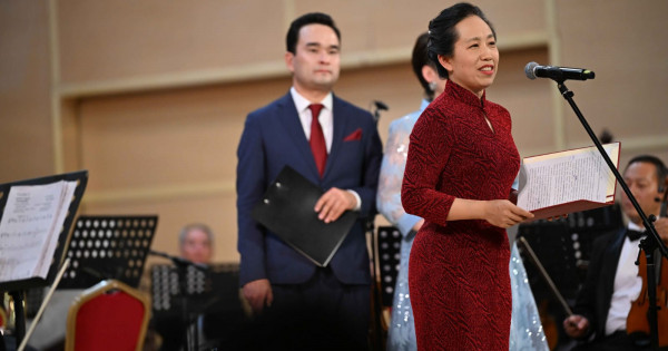 Saltanatty konsertte Qytaı Halyq Respýblıkasynyń Almatydaǵy Bas konsýly Szıan Veı hanym sóz alyp: «Biz búgin Qytaıdyń uly halyq kompozıtory Sıan Sınhaıdyń týǵanyna 120 jyl tolýyn birge atap ótpekpiz. Ol dáýirdiń rýhanı qýaty men Otanǵa degen sheksiz súıispenshilikpen shabyt alyp, «Sary ózen» kantatasy men «Taıhanshan taýynda» sekildi máńgilik mýzykalyq týyndylardy dúnıege ákeldi. Ol tek qytaı mýzykasynyń ǵana emes, zamanaýı álemdik mýzyka tarıhynyń da jarqyn injýi.