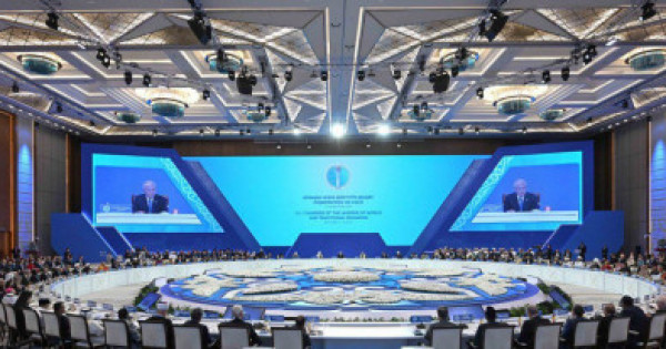 «Eleýli jetistikterge qaramastan, adamzat kóptegen gýmanıtarlyq syn-qatermen betpe-bet kelip otyr. Mıllıondaǵan adamdar ashtyqtan, indetten, qorshaǵan ortanyń azyp-tozýynan jáne klımat ózgerisinen zardap shegýde. Qazaqstan kedeılikti azaıtýǵa, ekologııalyq problemalardy sheshýge jáne gýmanıtarlyq kómek kórsetýge aıtarlyqtaı kúsh-jiger jumyldyrady. Bul máselelerdi kelesi jyly sáýir aıynda Astanada ótetin Ekologııa jáne ornyqty damý óńirlik sammıtinde talqylaý josparlanǵan. Elimiz – musylman áleminiń qıyr soltústiktegi eń úlken aımaǵy. Otyz jyl buryn biz Islam yntymaqtastyǵy uıymynyń múshesi atandyq. Osy bedeldi birlestik aıasynda Qazaqstan Azyq-túlik qaýipsizdigi jónindegi ıslam uıymynyń qurylýyna bastamashy boldy. Din qaıratkerleri árqashan adamdardy jigerlendirip, ıgi is jasaýǵa, joq-jitikke járdemdesýge shaqyrady. Dinı qaýymdar gýmanıtarlyq mıssııalar men eriktiler baǵdarlamasyn iske qosyp, mektep pen aýrýhana ashady. Jastar men áleýmettik álsiz toptarǵa qamqorlyq kórsetip, klımat pen mıgrasııa máselesin qozǵaıdy. Bul XXI ǵasyrda da dinniń jasampaz kúshke ıe ekenin taǵy bir dáleldeıdi. Onyń múmkindigin tolyq paıdalaný qajet», dedi Prezıdent.
