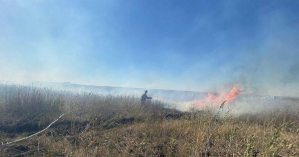 Al Qurmanǵazy aýdanynda 67 shaqyrym qashyqtaǵy «Jarkasa» kanalynyń qarsy betinde, Kaspıı teńiziniń jaǵalaýyndaǵy 30 gektarda qamys qopasy byqsyp jatyr.