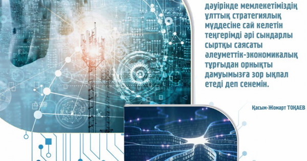 Eger buryn óndiriske keregi temir, aýyl sharýashylyǵy úshin jer qajet bolsa, qazir sıfrly dáýir keldi. Ekonomıkamyz aqparatqa negizdelip otyr. Bolashaqta kim, qaı el tez arada kólemdi aqparattardy, ınternet júıesin, birlestikterdi, jelilerdi, jasandy ıntellektini, genomıkany, «altynshy-jetinshi sezim» dep atalatyn kognıtıvtik qabiletterdi tez ıgerse, solar ozyp, álemdik kóshbasshy bolady. Qazirgi kezeń – VI-VII tehnologııalyq tártiptiń zamany (aqparatty-kommýnıkatıvti tehnologııa, nano-bıotehnologııa, genderlik ınjenerııa, kosmosty ıgerý). Bul jaǵynan biz, ásirese jańa tehnologııa jaǵynan kem degende, 30-40 jyl artta kelemiz. Osydan-aq, Memleket basshysy nege jasandy ıntellektige aıryqsha mán bergenin ańǵarýǵa bolady.