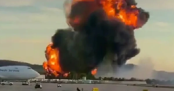 Kýágerler apat kezinde qýatty jarylys pen aspanǵa kóterilgen qoıý qara tútindi baıqaǵandaryn aıtqan. Jergilikti bılik áýejaı mańynda tótenshe jaǵdaı jarııalap, 8 shaqyrymdyq aýmaqta turǵyndarǵa shelter-in-place (ornynda qalý) rejımin engizdi. Bul sheshim ýly tútinniń taralý qaýpine baılanysty qabyldanǵan.
