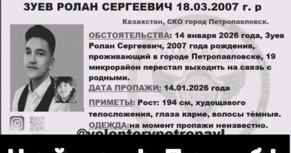 Aıta keteıik, Rolan Zýev qańtar aıynyń ortasynda úıinen shyǵyp ketkennen keıin týystarymen baılanysqa shyqpaǵan. Onyń joǵalǵany jóninde polısııaǵa ápkesi habarlap, sodan beri jas jigitti izdestirý jumystary bastalyp ketken edi.