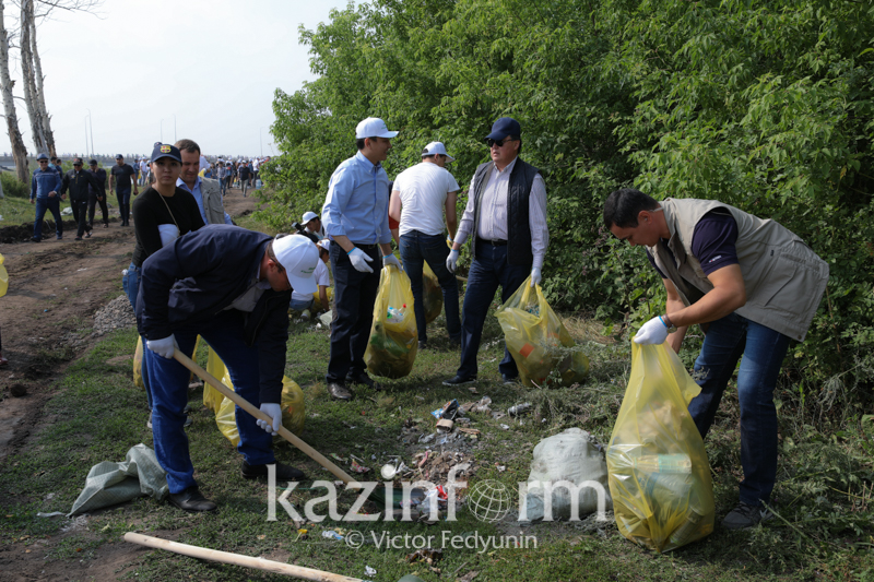Úkimet basshysy bastaǵan elorda jurty Esil men Qarasý ózenderin tazalaýda
