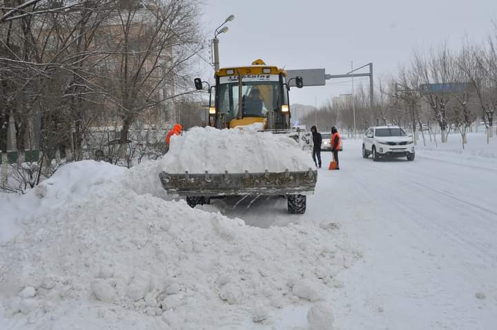 Atyraý kóshelerin qardan tazartyp jatyr