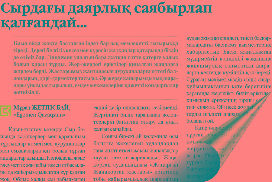 «Bas jarylsa – bórik ishinde, qol synsa – jeń ishinde» demekshi, jalpaq jurtqa jaıyla bermeıtin jaıttar bolady ǵoı. Ásirese otbasy, oshaq qasyndaǵy oqıǵalar kóbine-kóp «jabýly qazan jabýly kúıinde» qalatyny belgili. Sondaı oqıǵalardyń soraqysy – turmystyq zorlyq-zombylyq. О́kinishtisi sol, áli jetken soń áıelin taıaqtap, bassyzdyqqa salynyp balasyn sabaıtyndar elimizde kún sanap kóbeıip barady.