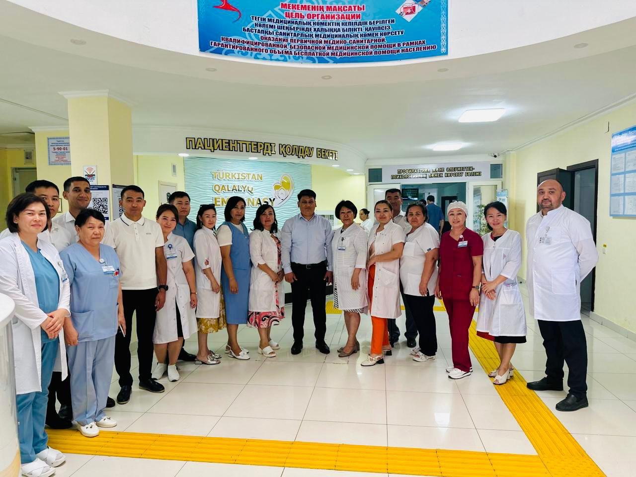 Túrkistan qalalyq emhanasynda aımaqtyq qyzmetkerlerdiń jumys júktemesin azaıtý, halyqpen habarlasýdyń tıimdiligin arttyrý maqsatynda jasandy ıntellekt kómegi engizilgen. Bul óz kezeginde meıirgerlerdiń ýaqytyn, jumys kúshin únemdeýge kómektesedi. Jasandy ıntellekt pasıentterdi dárigerdiń qabyldaýyna, skrınıngtik tekserýden ótýge, flıýorografııa-rentgenge túsýge, balalardy ekpe alýǵa shaqyrady.