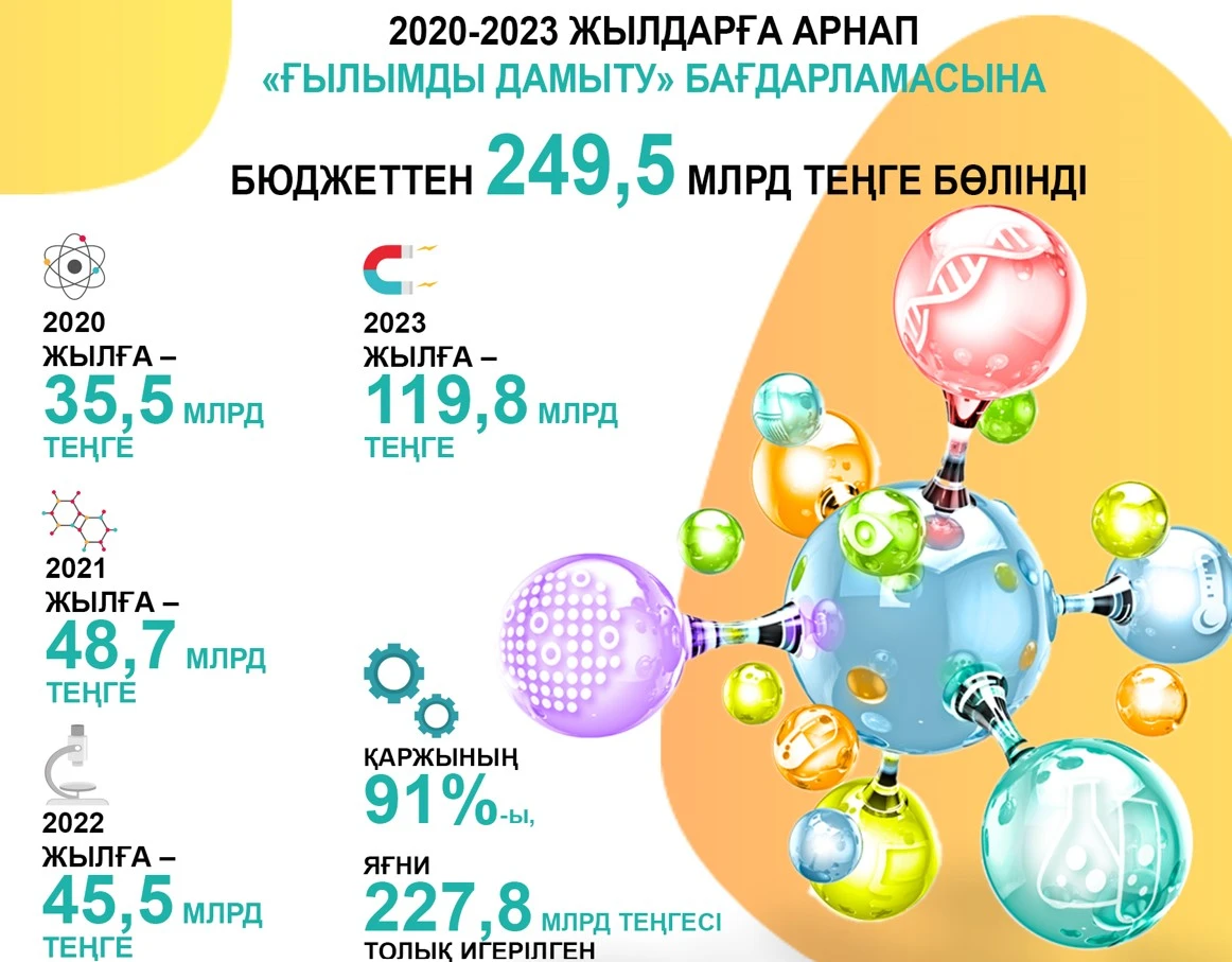 Ǵylym salasy tıisti deńgeıde qarjylandyrylsa ǵana qatardan qalmaı, básekege qabiletti el bolatynymyz anyq. Ǵalymdardyń ǵylymı zertteýmen aınalysýyna jaǵdaı jasalsa jáne olardyń jobasy kedergisiz óndiriske ense, ınnovasııanyń ıgiligin kórer edik. Sondyqtan ǵylymdy qarjylandyrýdy qoǵam damýynyń negizi retinde qarastyra alamyz. Qýantarlyǵy osyǵan qadam jasalyp jatyr. Jyl saıyn atalǵan salaǵa bólinetin qarjy artyp keledi.